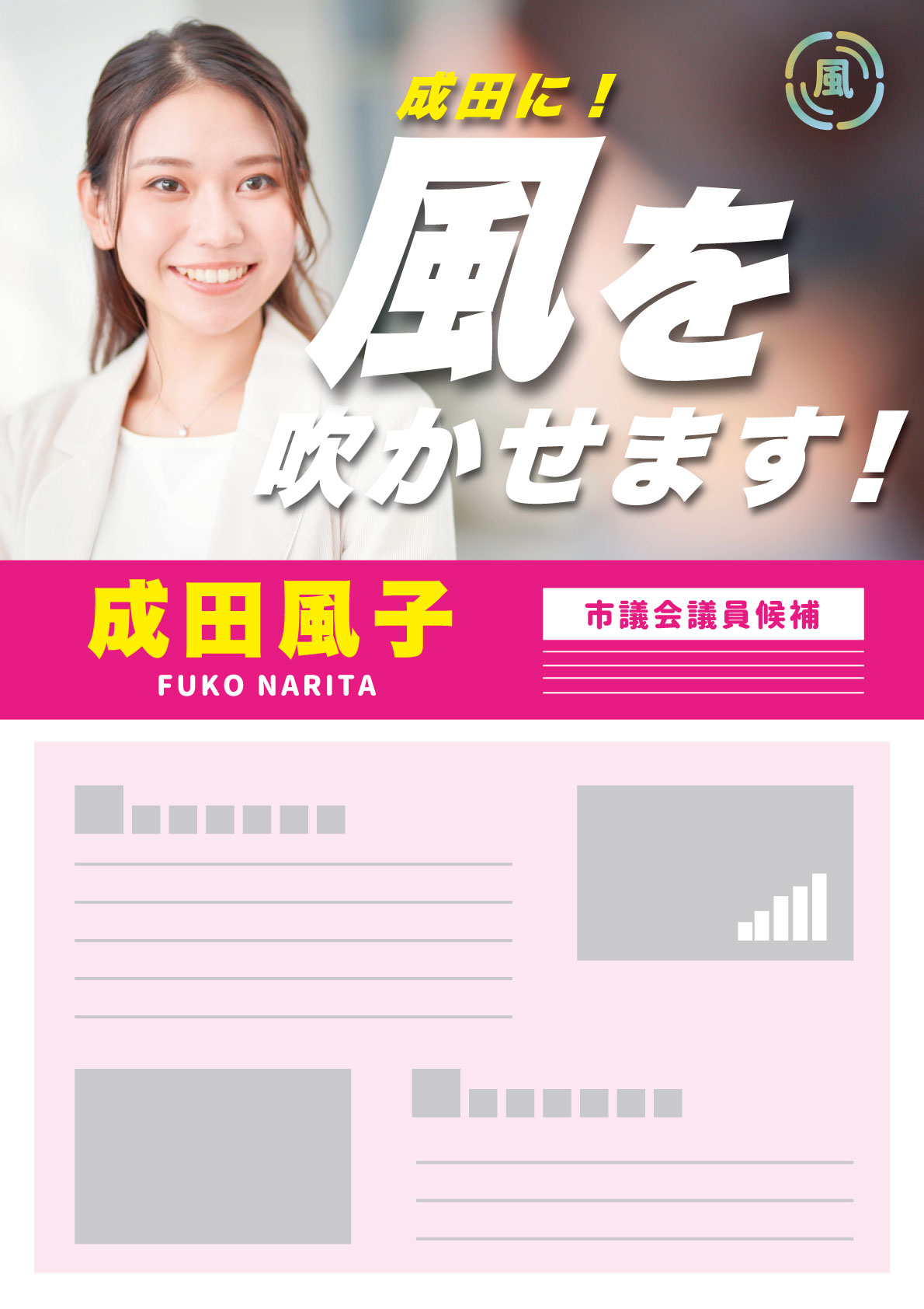 選挙関連の広告物には重要な要素があります。それは、「写真」「コピー」「配色」につきます。候補者の人柄はもちろん、清潔感、政策、やる気などを有権者に伝えるために、企画の段階からご相談ください。アドミルでは、お人柄に合わせた写真をプロカメラマンが撮影いたします。また、ロゴを作成し、のぼり旗やリーフレット、名刺にあしらうことによって、印象に残りやすい広告物を作成するのも良いでしょう。これまで、さまざまな候補者の広告物を作成させていただき、「結果」で証明してまいりました。ぜひ、ご相談ください。
