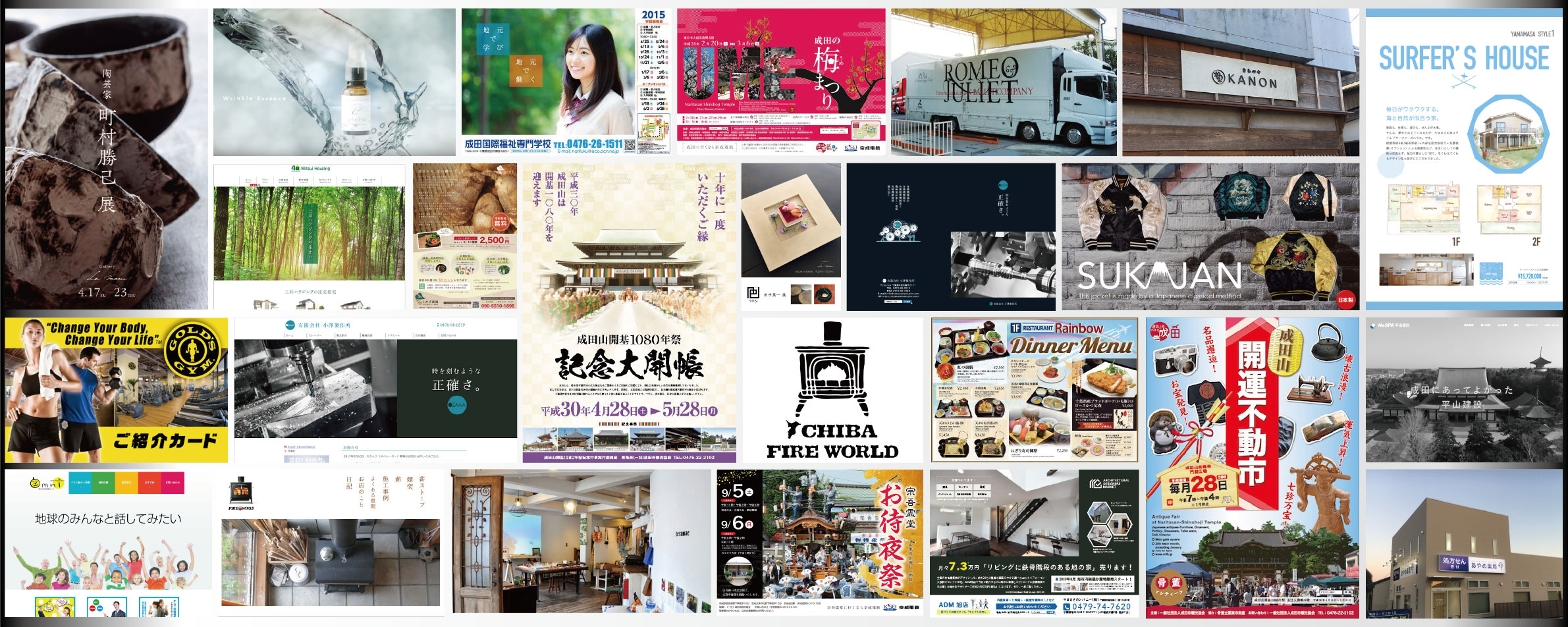 アドミルでは名刺はもちろん、箸袋やシールなど小さいものや、チラシ、パンフレット、ハガキ、ポスター、カレンダーなどの印刷物、ホームページやブログなどWEBデザイン全般、そして、看板、横断幕などまで、様々なデザインをしております。