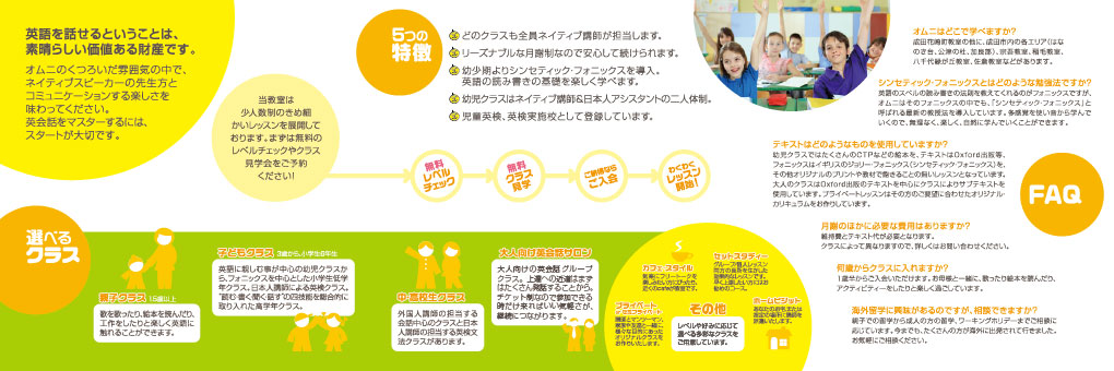オムニインターナショナル様のパンフレット(リーフレット)を製作いたしました。CDサイズ程度の正方形3つ折パンフレットです。持ち運びもしやすく、コンパクトに内容をまとめています。