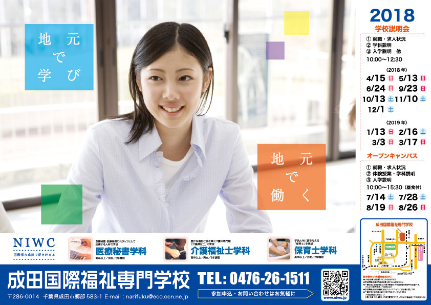 成田国際福祉専門学校様のポスターを製作させていただきました。駅構内や高校など、これから地元で学びたい方の目に触れる場所へ掲載いたします。