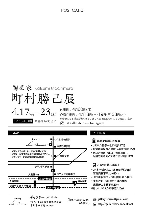 Gallery Le Mani様 第2回 町村勝己展「ポストカード制作」